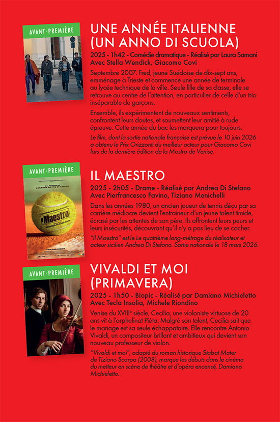A sistra (titoli scorrevoli) Vannes A la Maison des Associations, 31 rue Guillaume Le Bartz : "Conversiamo ;;; in italiano" en 2025 les mercredis de 16h30 à 18h00 le 08 octobre et le 10 décembre / Café littéraire en 2025 le mercredi 12 novembre. Nous consulter pour les programmes