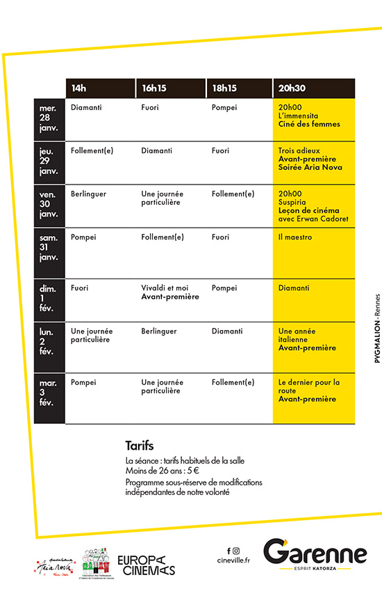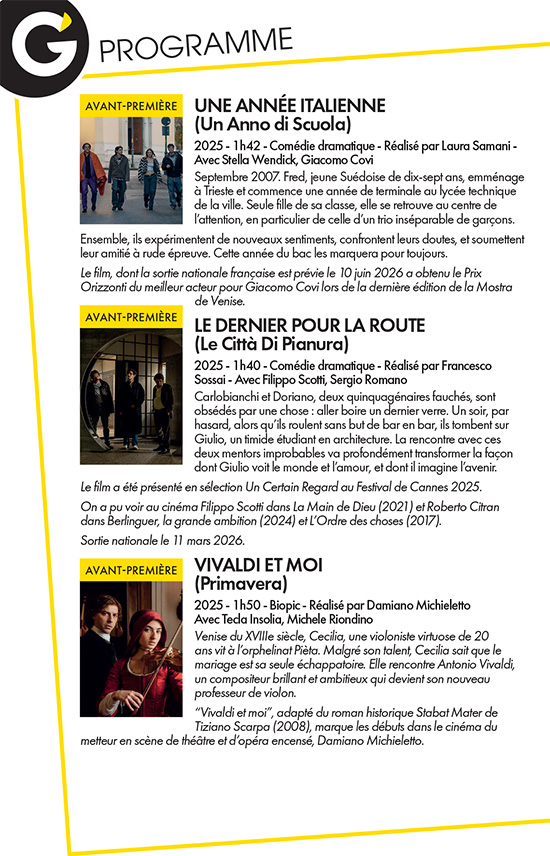 Rennes A la Maison Internationale, 7 quai Chateaubriand : "Chiacchieriamo ... in italiano" en 2025 les vendredis de 18h00 à 19h30 le 03 octobre, 21 novembre et 12 décembre / Apéro littéraire en 2025 les mercredis de 18h30 à 20h00 le 15 octobre, 05 novembre et 17 décembre. Nous consulter pour les programmes.